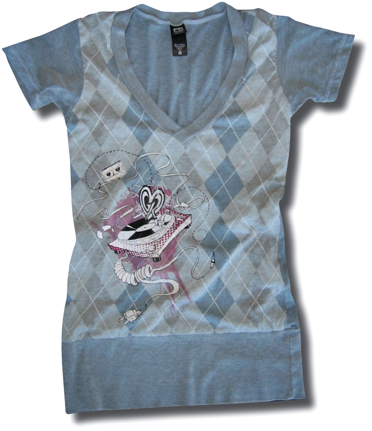 V-neck s/s argyle tee. 90/10 cotton poly jersey W/ 5”