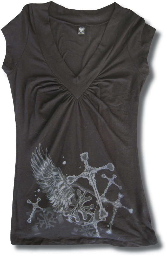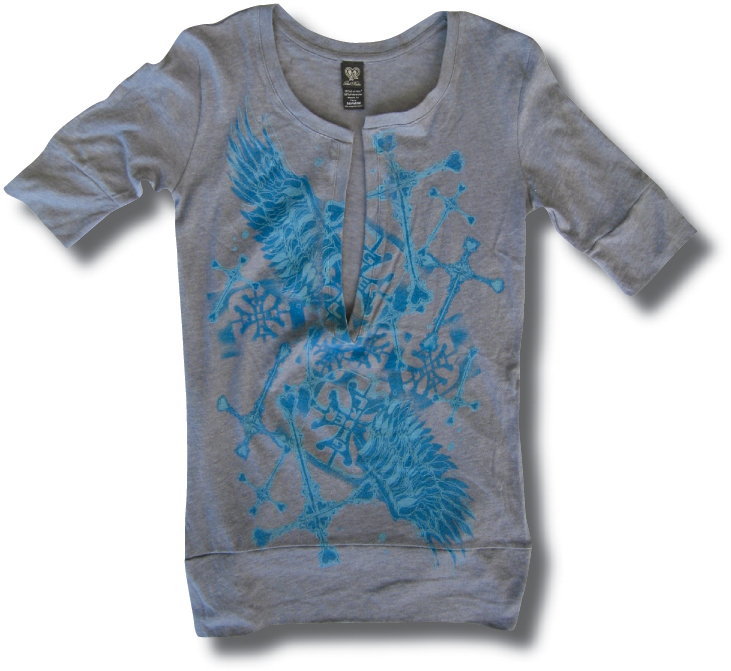 sleeve tunic w/ split v-neck. 50s single jersey, cotton/spandex.