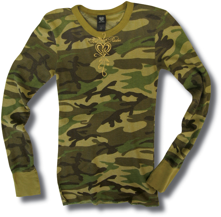 fit l/s crew. 50/50 cotton poly printed waffle thermal.