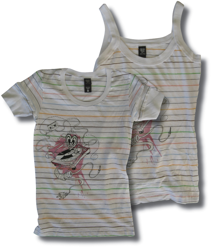 Crewneck or tank. 100% cotton with multi-colored stripes.