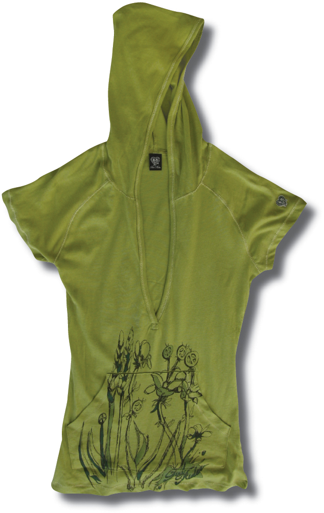 Cap sleeve w/ baby kangaroo pocket. Reversed contrast