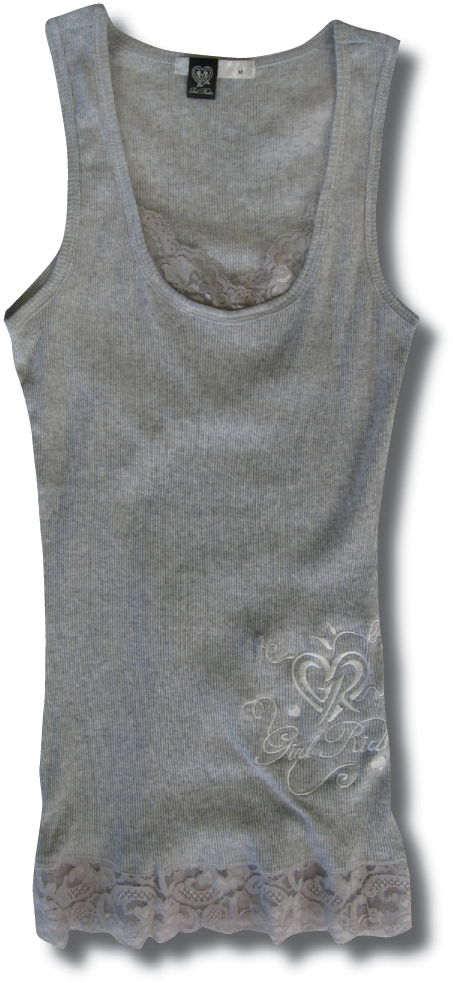 Soft 2x1 extra long ribbed tank w/ lace trim. 50s